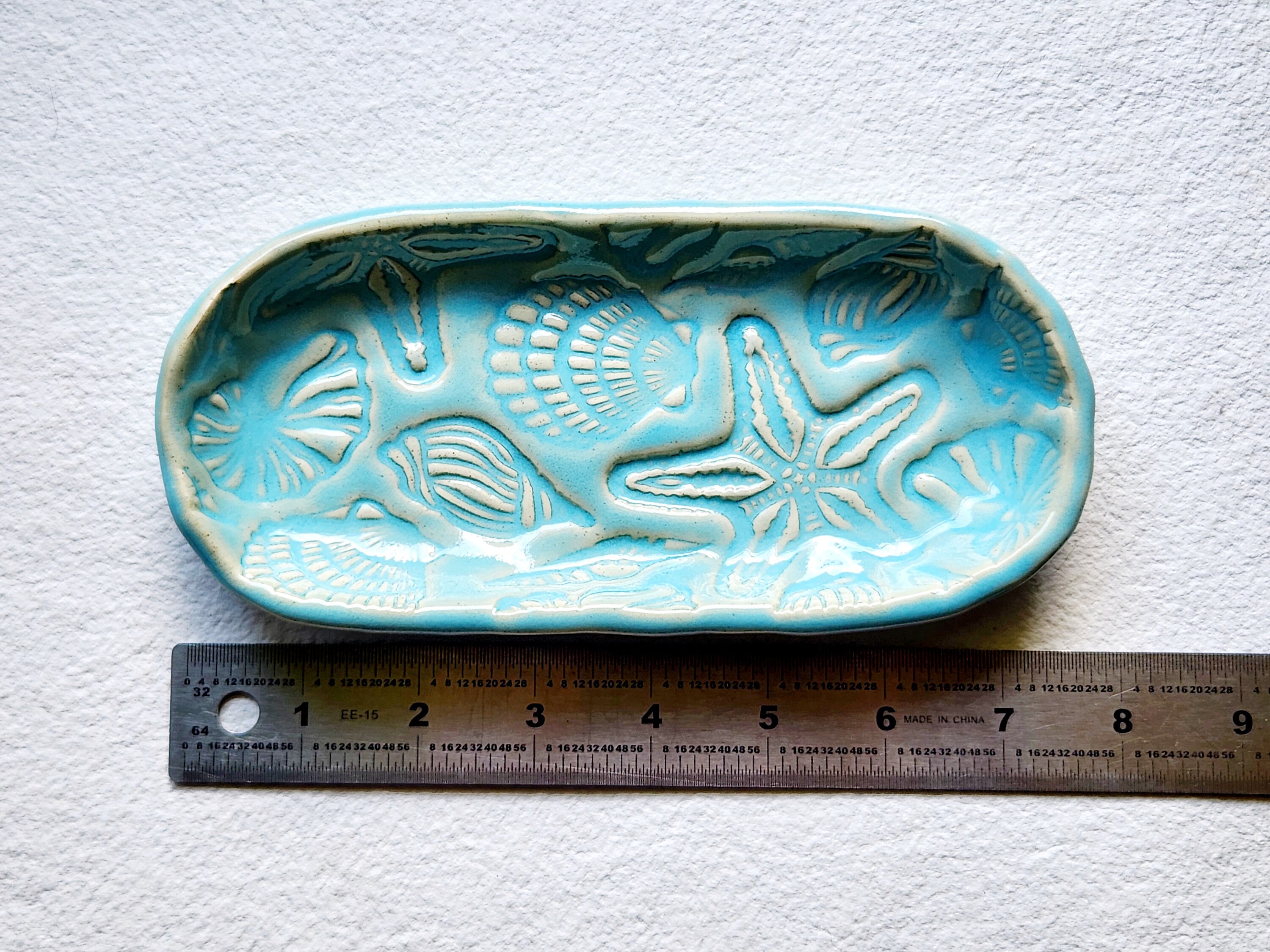 I cannot say enough great things about this shop: beautiful items made caring hands. Her prices are great, and the items are shipped quickly and carefully. They are also packaged in a lovely fashion. With this order she included an adorable little gift: something I would have happily purchased - a small sea turtle magnet. I use my oblong shell plate as a spoon rest everyday. It cleans up well and looks great on the stove. Shop here! You won't be disappointed.