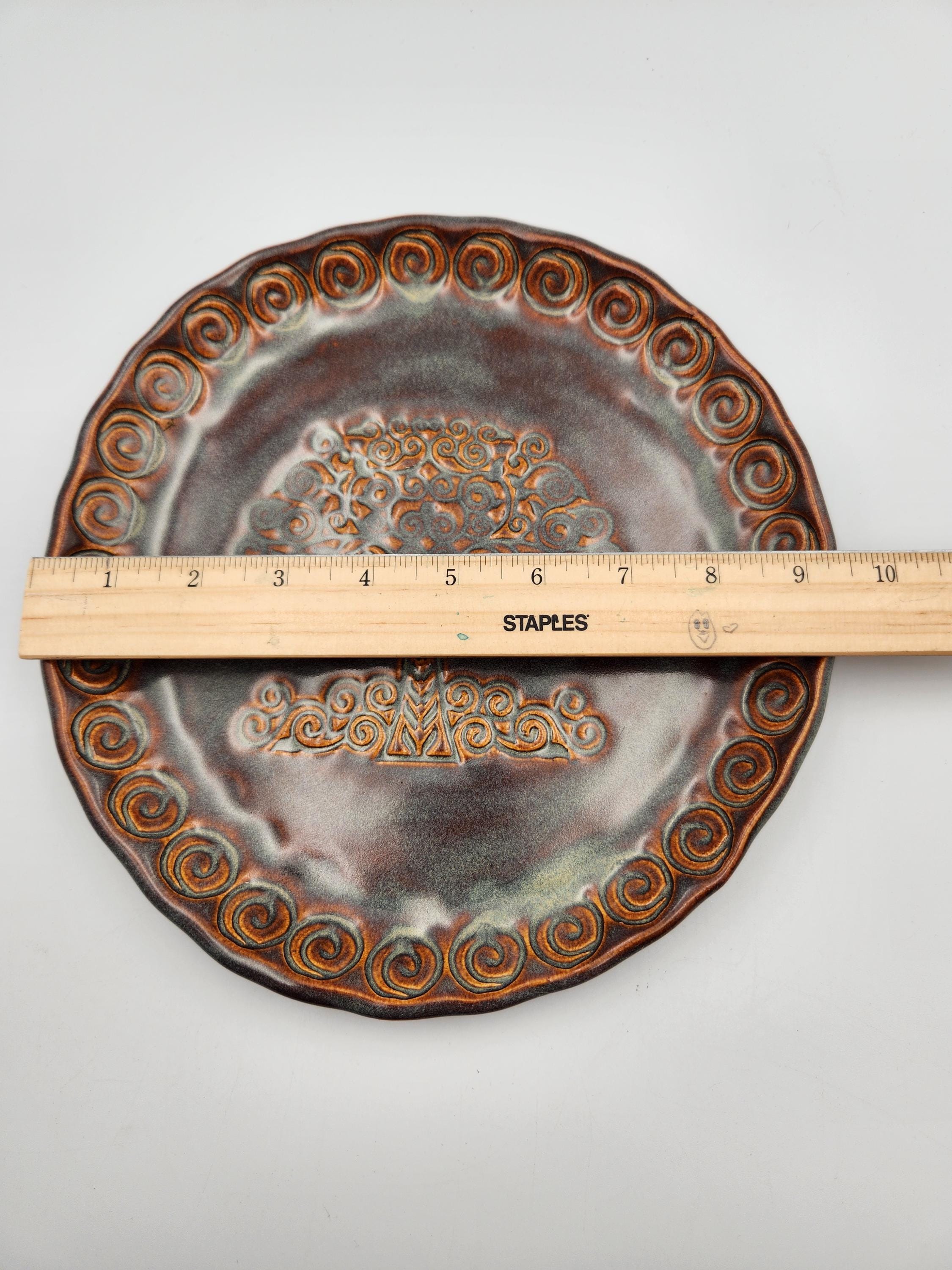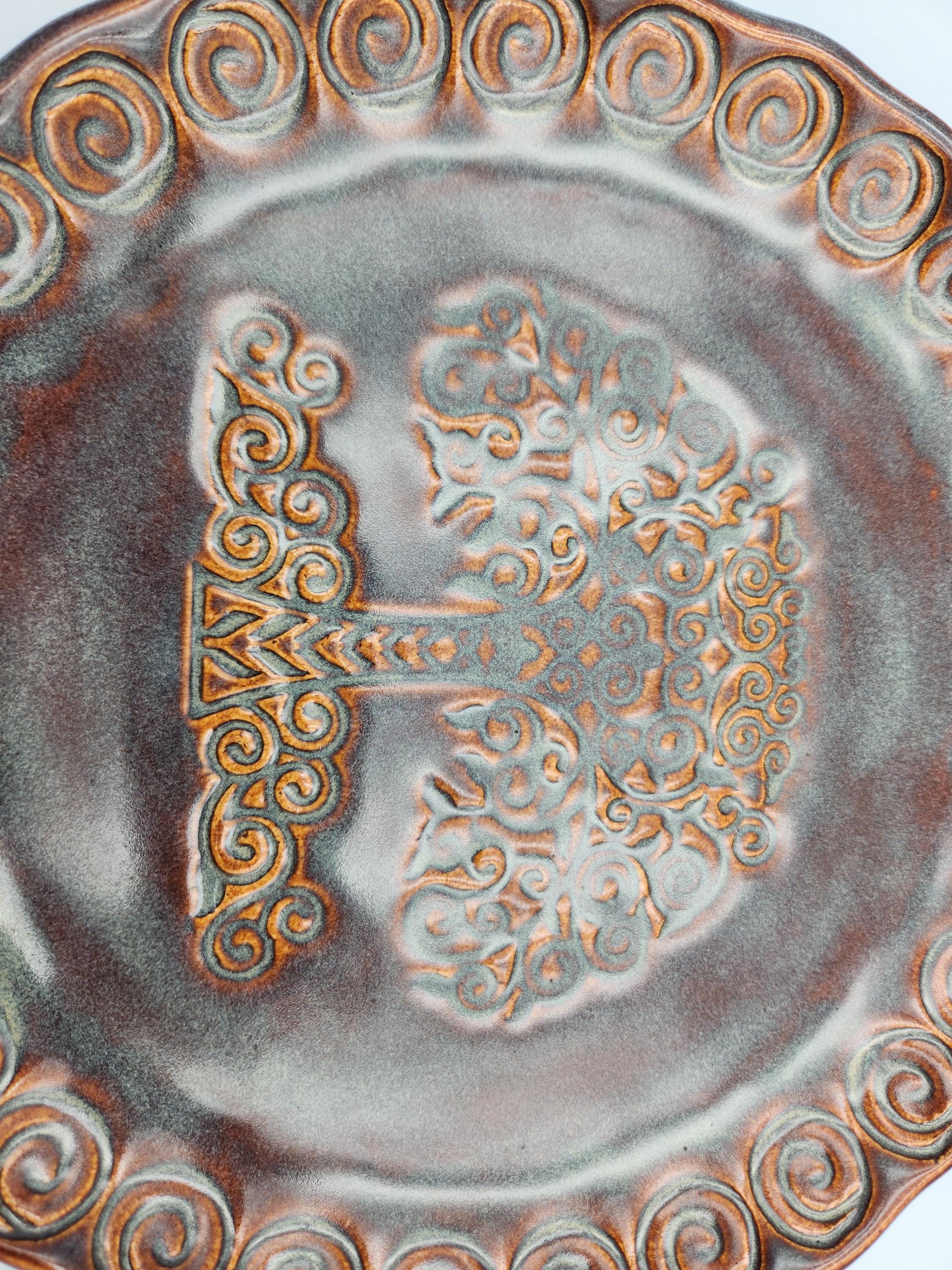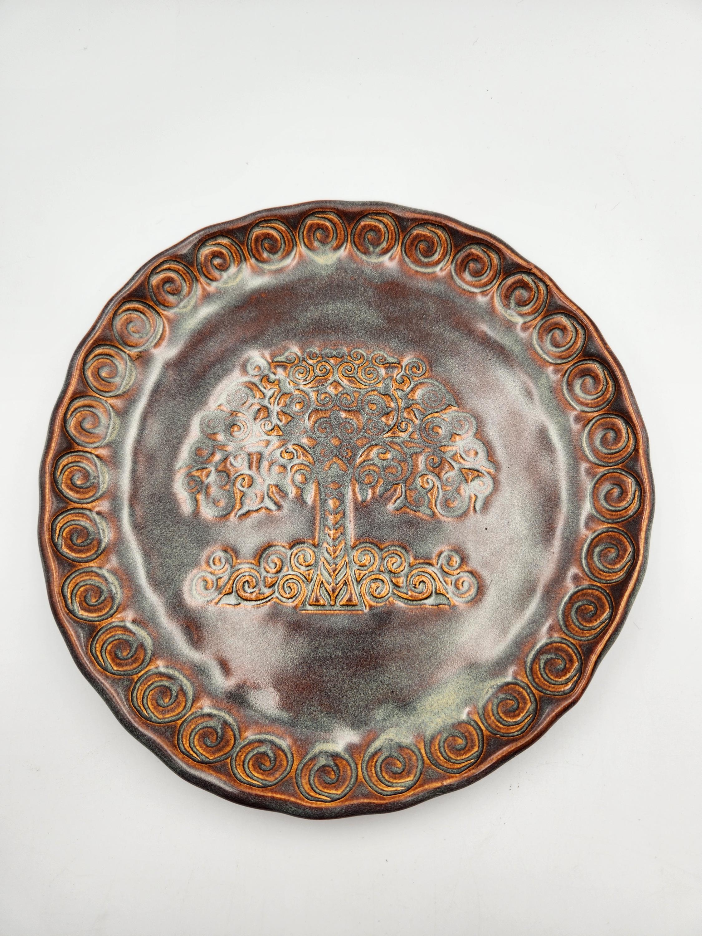 This listing is for a single 9.25" wide round tree of life themed plate.